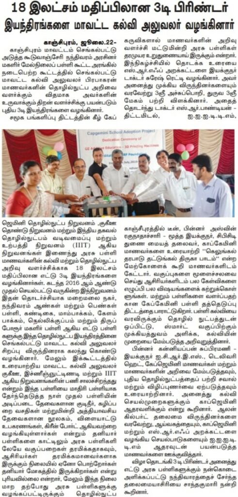 Tamil Sudar January 3, 2020 press Capgemini School Adoption Project – Chennai, Tamil Sudar 22.07.2019 Share 0